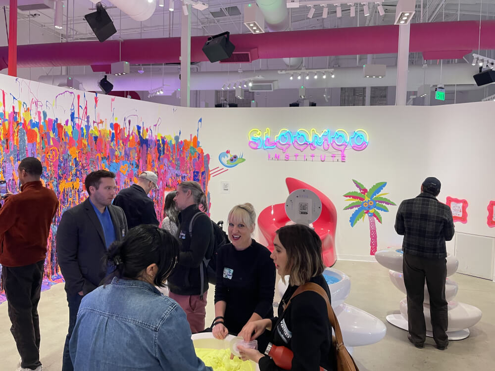 Our group of AI artists designed an interactive event incorporating generative AI at Sloomoo’s immersive slime experience that allows guests to co-create a narrative story featuring original ideas from our creative team.